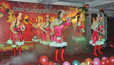 1月11日下午陜西廣通(萬晟通)運(yùn)輸發(fā)展有限公司2012新春團(tuán)拜會(huì)在西安湘鄂情餐廳舉行。陜煤運(yùn)銷集團(tuán)財(cái)務(wù)經(jīng)理和學(xué)謙、運(yùn)輸中心王江、廣通公司董事長(zhǎng)任曉鵬、總經(jīng)理沈來萬、廣通、萬晟通各分公司主管以上人員及公司先進(jìn)個(gè)人近百余人參加了此次團(tuán)拜會(huì)。此次團(tuán)拜會(huì)除了招待晚宴外還有精彩的文藝演出與豐富的現(xiàn)場(chǎng)抽獎(jiǎng)活動(dòng)。